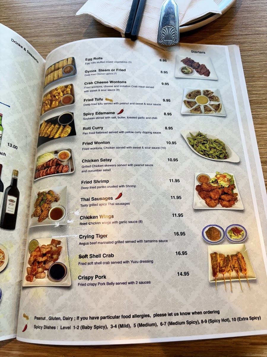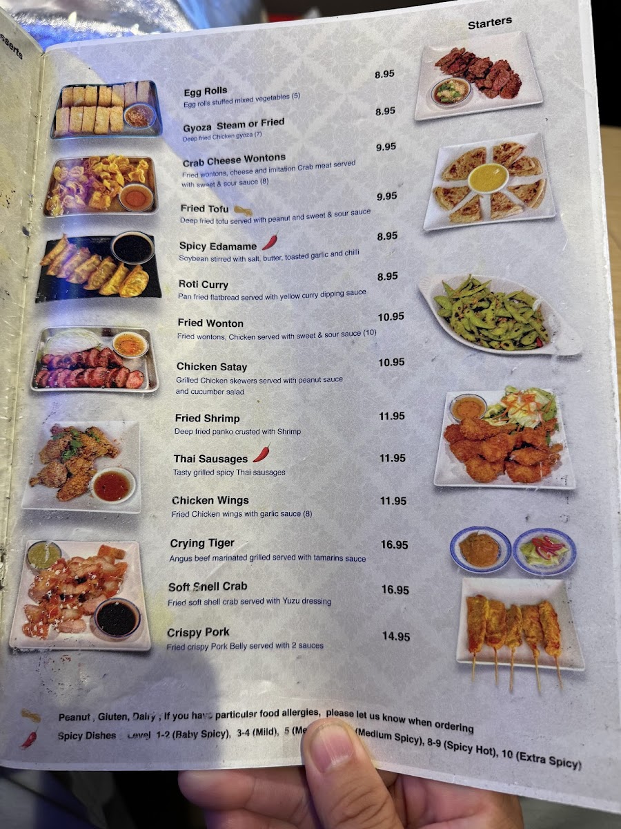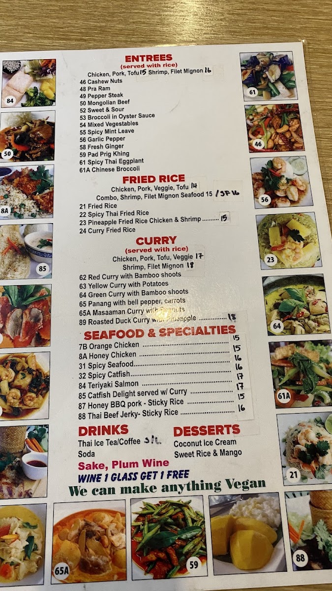 The menu features enticing starters like their crispy Egg Rolls and flavorful Thai Sausages, perfect for sharing. For the main course, indulge in dishes like the aromatic Spicy Eggplant or the hearty, savory Cashew Nut option, catered to suit every palate.